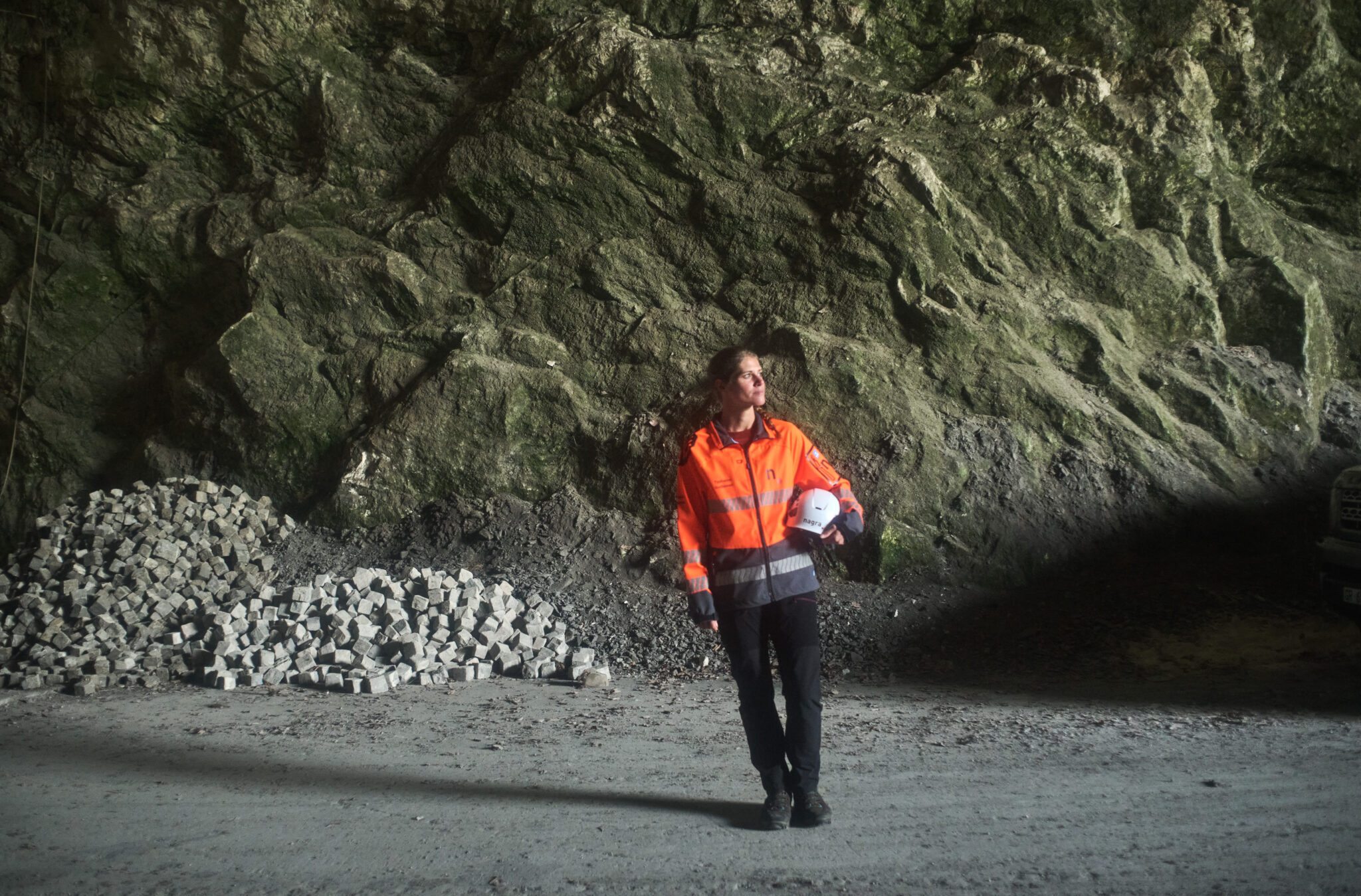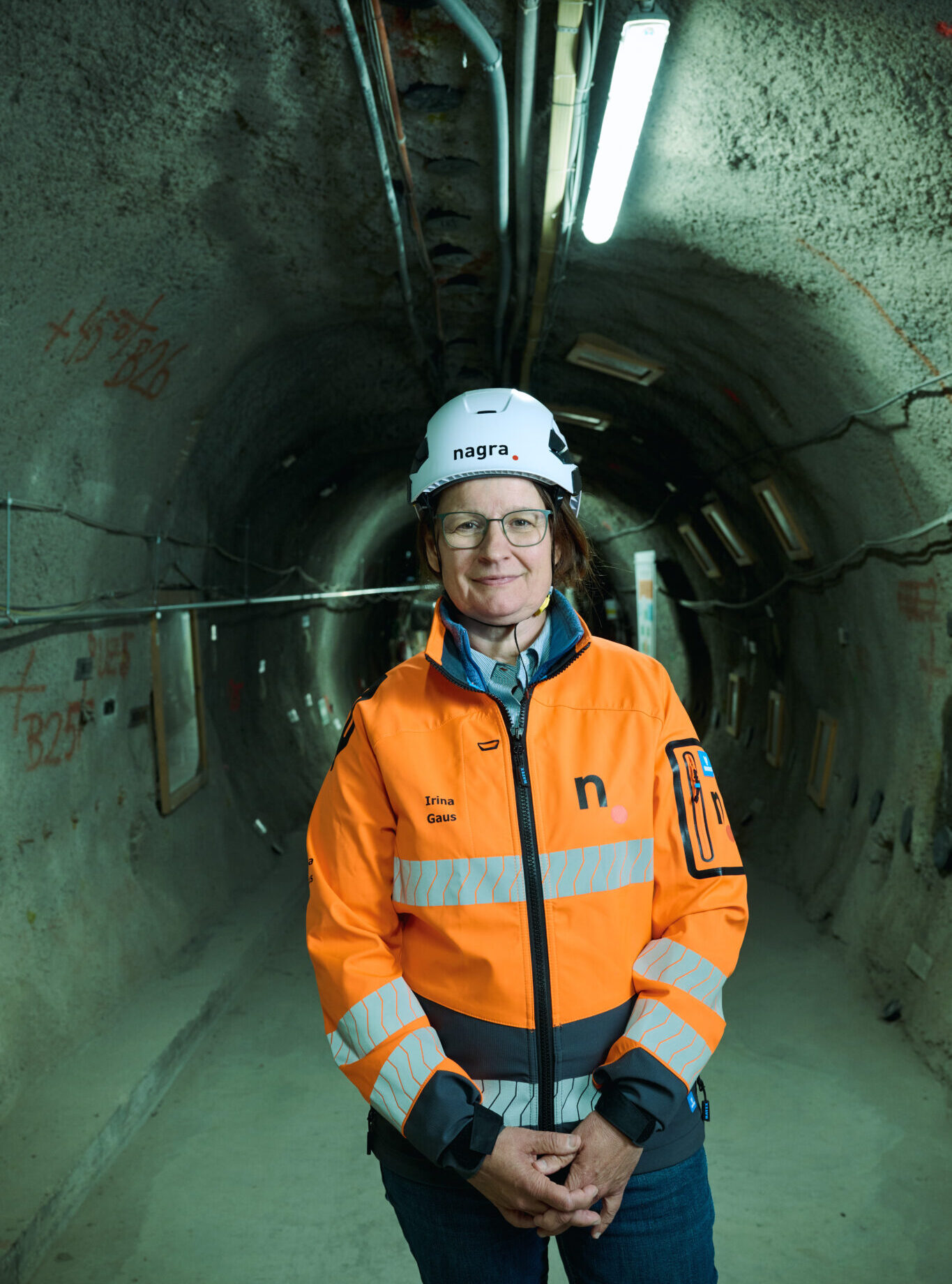 Irina Gaus is in her white Skoda, waiting at the security gate that leads to the Mont Terri Rock Laboratory. The yellow warning lights on the walls flash nervously, as if to say: if you’re not feeling apprehensive yet, now would be the time. The monstrous metal gate behind Gaus’ car is not yet fully closed, the one in front still blocks her way into the interior of the Jura mountain in Saint-Ursanne. Irina Gaus is a member of Nagra’s Executive Board and is responsible for ensuring that the planned deep geological repository will not already be obsolete when construction begins a few decades from now. “Head Optimisation” is her official title. The blinking yellow warning lights illuminate the reflectors on Gaus’ orange jacket again and again.